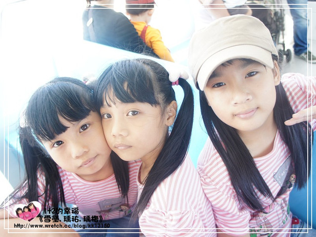 我和老大一起坐,雙胞胎跟另外的阿姨一起坐!