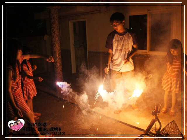 晚上還開心的放煙火。玩仙女棒
